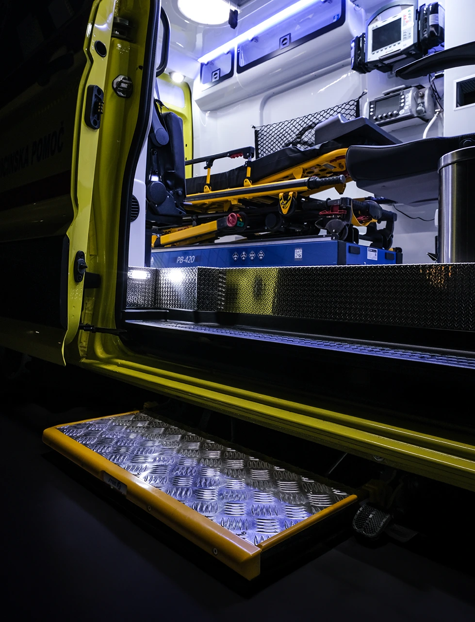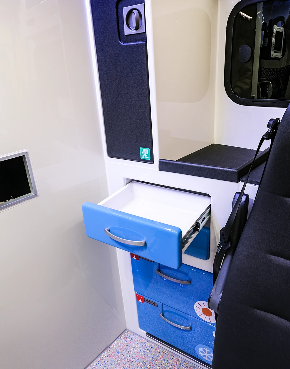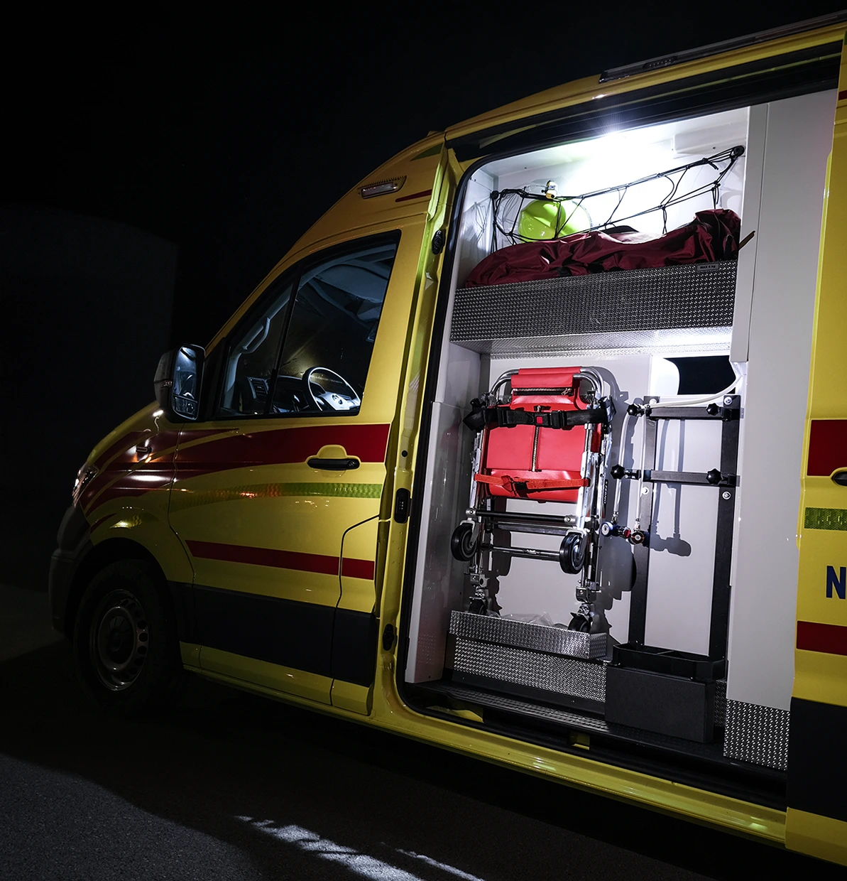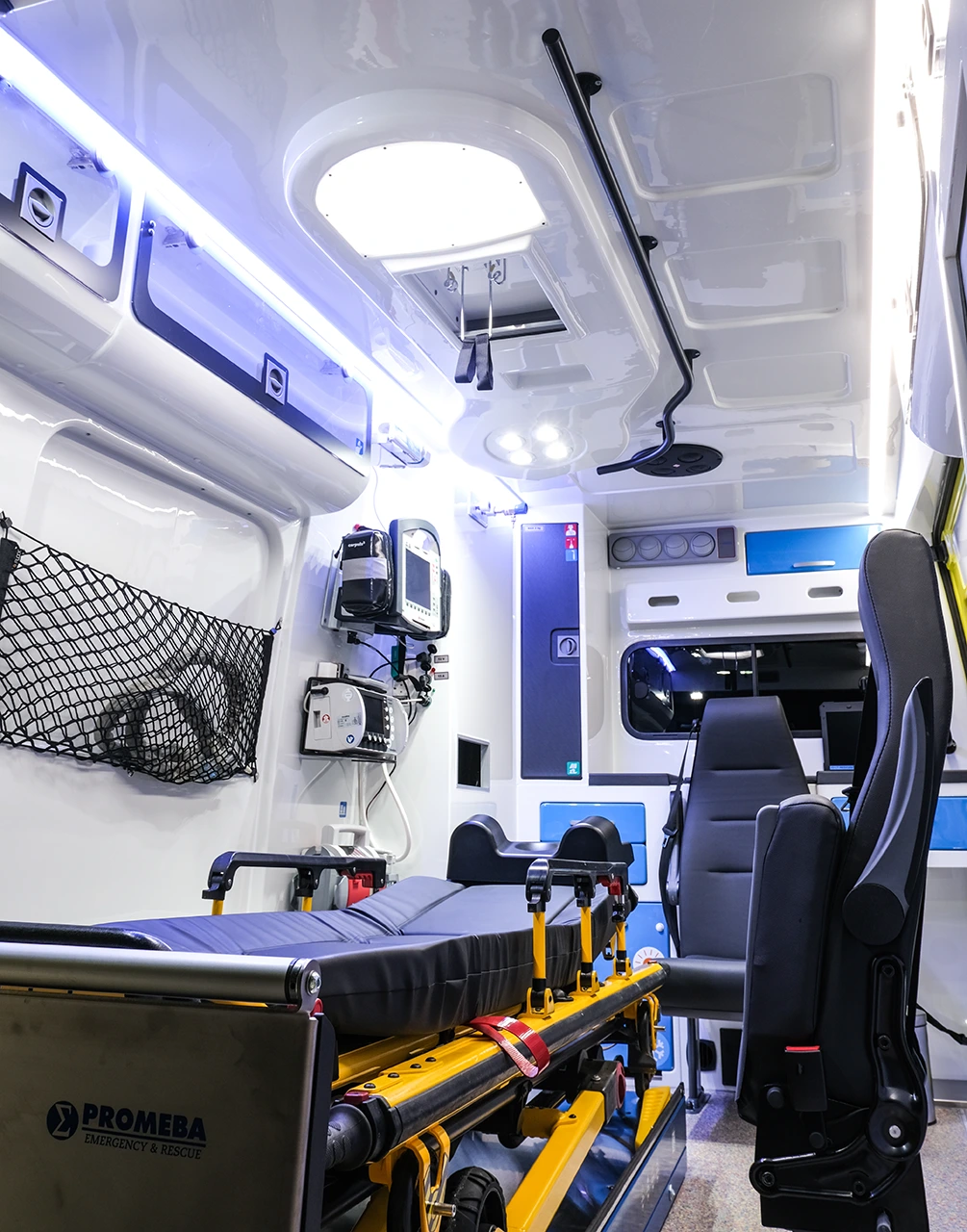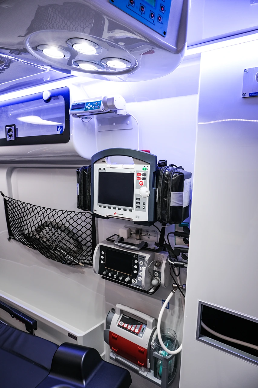 The interior is engineered to support precision and safety under real-world emergency conditions. Layout, access zones and component positioning are optimized to minimize physical strain, maintain stability during procedures and ensure immediate access to critical equipment, even in dynamic or confined environments.